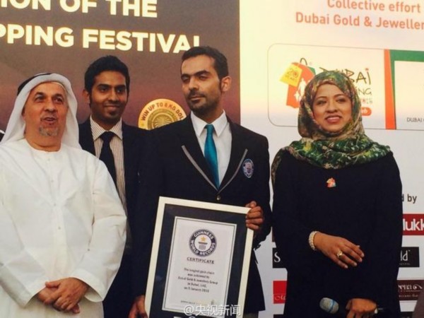 工作人员当场测量并宣布这条金链创下新的吉尼斯世界纪录。