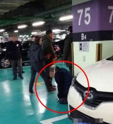 韩国母女辱骂并强迫停车场临时工下跪